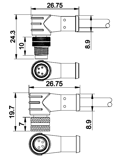 螺紋,澆鑄電纜/ screw moulded on cable |