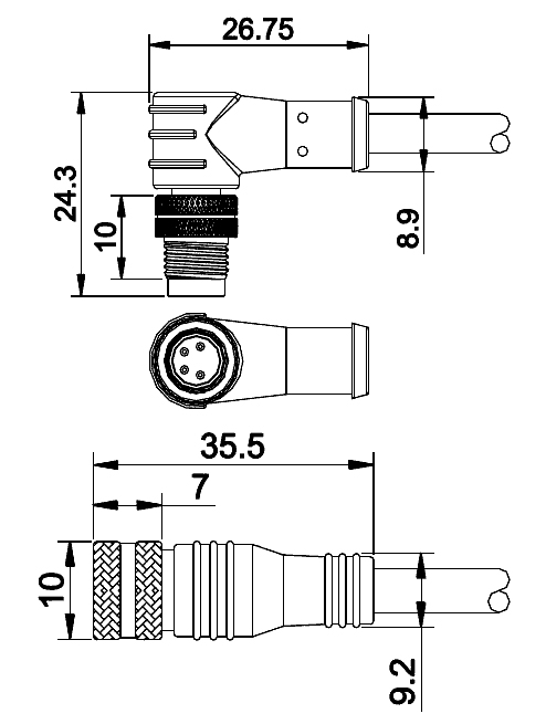 螺紋,澆鑄電纜/ screw moulded on cable |