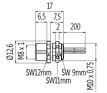 螺紋 0.14-0.5mm 2 (AWG 26) /澆鑄電纜 0.25mm 2 (AWG 24) |