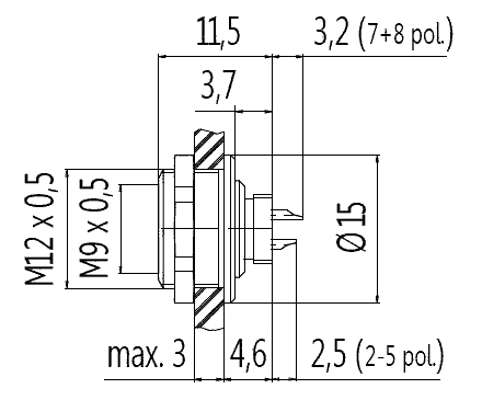 連接截面 (平方毫米) | Wire gauge mm2 | 5 x 025 mm2 | 8 x 014 mm2 |