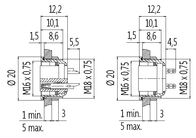 針數(shù) Number of contacts 2 3DIN 4 5 5(Stereo) 6DIN 7 7DIN 8DIN 12 14 19 24 鎖緊方式 Connector locking system 螺紋式 / screw 連接方式 Termination 焊接 / solder 連接截面 Wire gauge max.0.75mm 2 (max.AWG 20) max.0.25mm 2 (max...