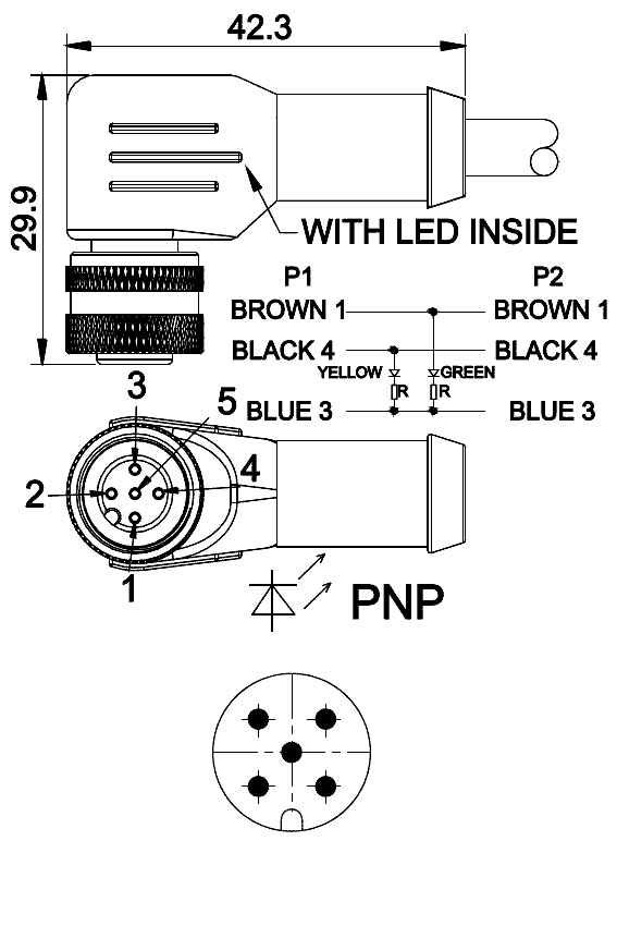 針數(shù) Contacts 3 4 5 8 12 連接截面 (平方毫米) Wire gauge mm 2 3 x 0,34 mm 2 4 x 0,34 mm 2 5 x 0,25 mm 2 8 x 0,25 mm 2 12 x 0,25 mm 2 外套材料 Material jacket PVC PUR PVC PUR PVC PUR PVC PUR PVC PUR 導(dǎo)線絕緣層 Insulatio...