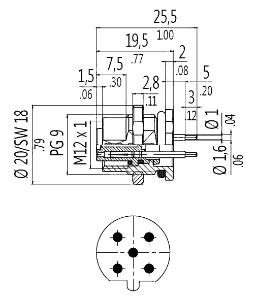 針數(shù) Contacts 3 4 5 8 12 連接截面 (平方毫米) Wire gauge mm 2 3 x 0,34 mm 2 4 x 0,34 mm 2 5 x 0,25 mm 2 8 x 0,25 mm 2 12 x 0,25 mm 2 外套材料 Material jacket PVC PUR PVC PUR PVC PUR PVC PUR PVC PUR 導(dǎo)線絕緣層 Insulatio...