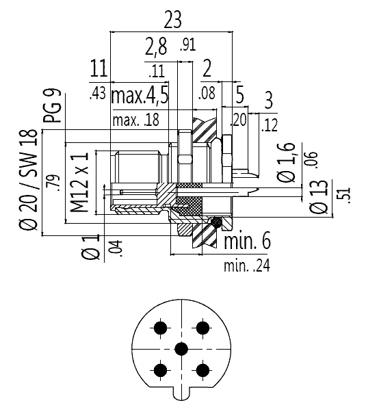 針數(shù) Contacts 3 4 5 8 12 連接截面 (平方毫米) Wire gauge mm 2 3 x 0,34 mm 2 4 x 0,34 mm 2 5 x 0,25 mm 2 8 x 0,25 mm 2 12 x 0,25 mm 2 外套材料 Material jacket PVC PUR PVC PUR PVC PUR PVC PUR PVC PUR 導(dǎo)線絕緣層 Insulatio...