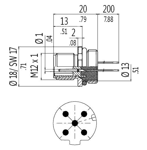 針數(shù) Contacts 3 4 5 8 12 連接截面 (平方毫米) Wire gauge mm 2 3 x 0,34 mm 2 4 x 0,34 mm 2 5 x 0,25 mm 2 8 x 0,25 mm 2 12 x 0,25 mm 2 外套材料 Material jacket PVC PUR PVC PUR PVC PUR PVC PUR PVC PUR 導線絕緣層 Insulatio...